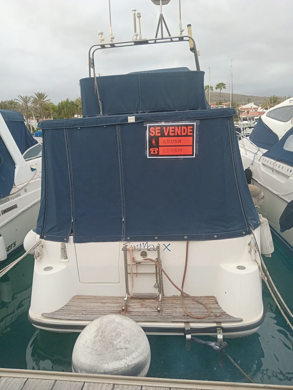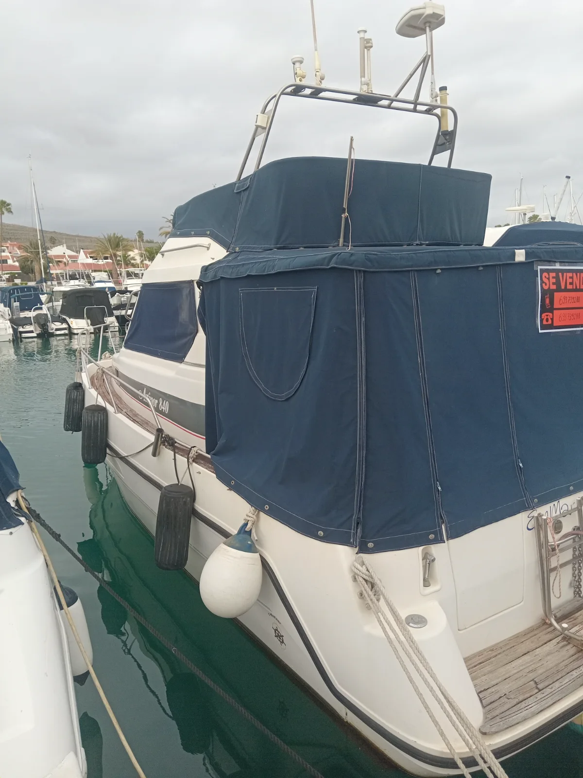 En cubierta destaca su configuración práctica para la vida en marina y fondeo, con bañera amplia, plataforma de baño con escalera y cerramiento/lona que protege la zona de cockpit, perfecta para alargar la temporada. La estructura superior tipo arco permite equipamiento y añade presencia al conjunto. Una oportunidad muy competitiva dentro del mercado de barcos diésel de ocasión en este rango de eslora.