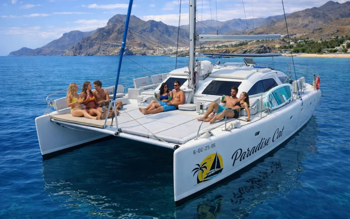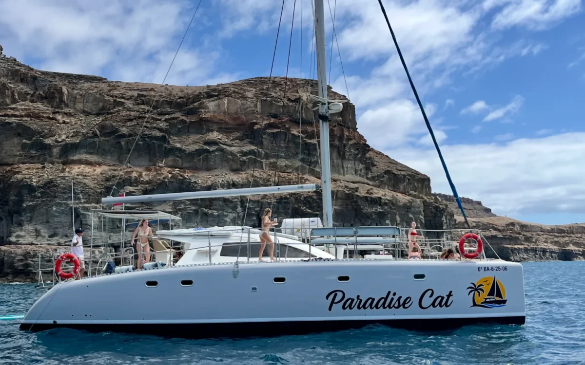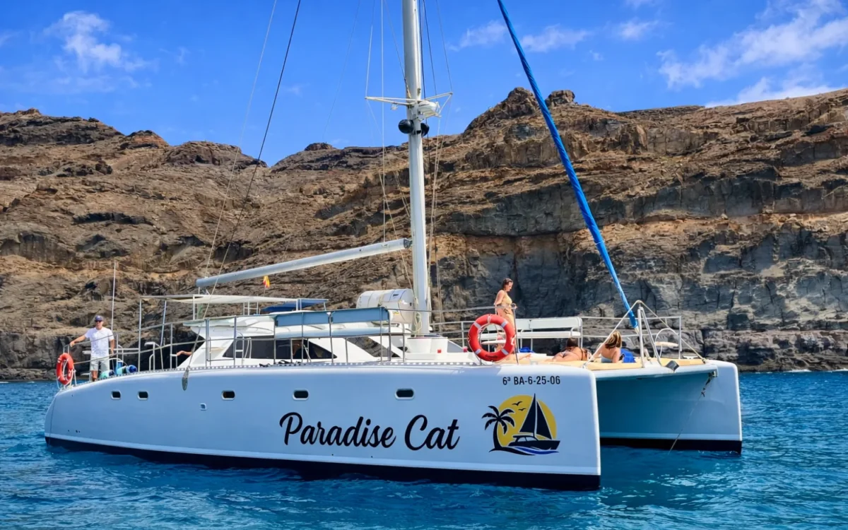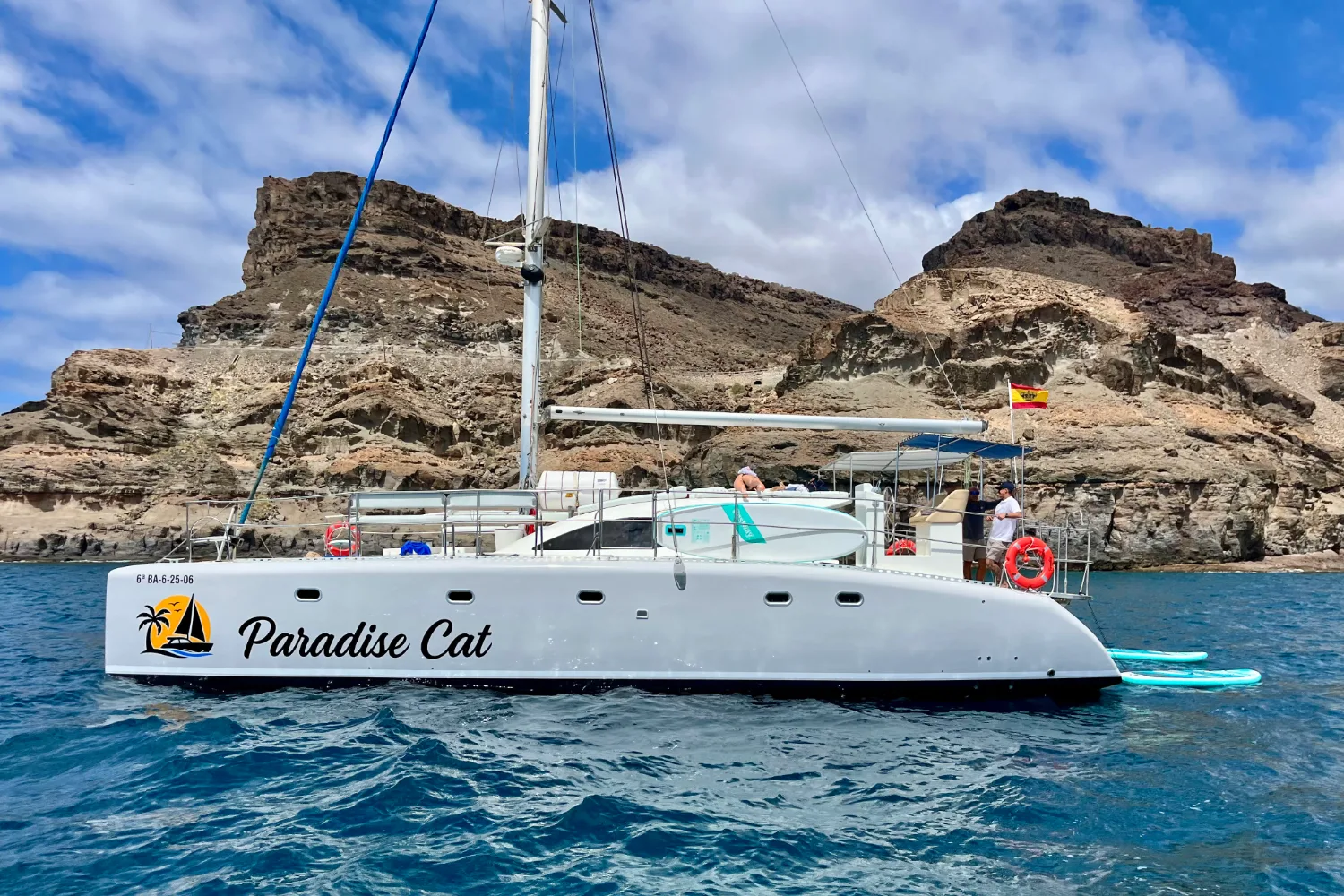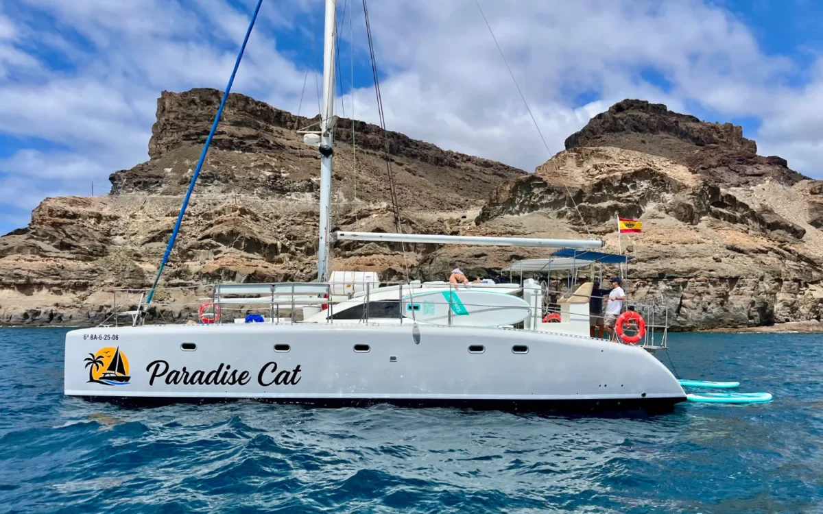 Vive una jornada inolvidable a bordo del Paradise Cat, un elegante catamarán diseñado para disfrutar de la costa sur de Gran Canaria con comodidad, amplitud y un ambiente cuidado. Con capacidad máxima para 45 pasajeros, esta experiencia compartida combina navegación, relax, gastronomía y actividades acuáticas en un entorno privilegiado del Atlántico.