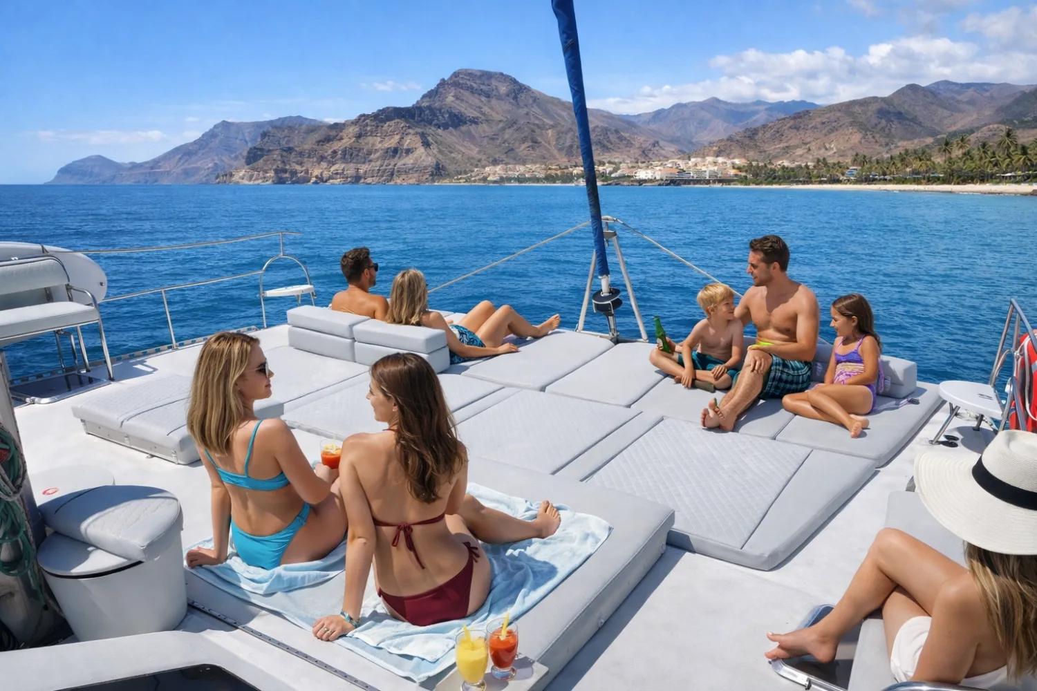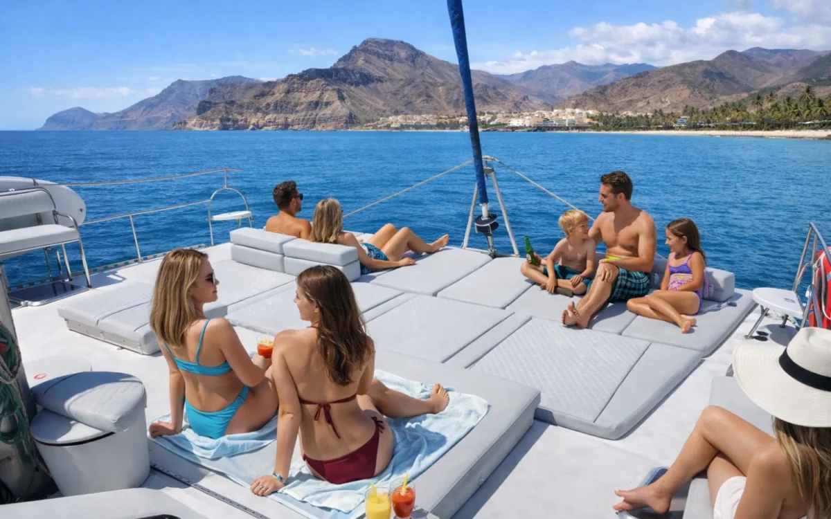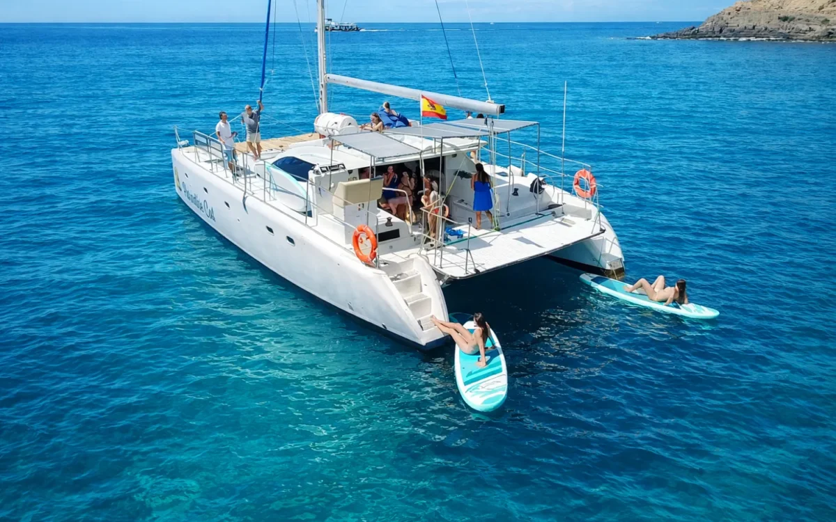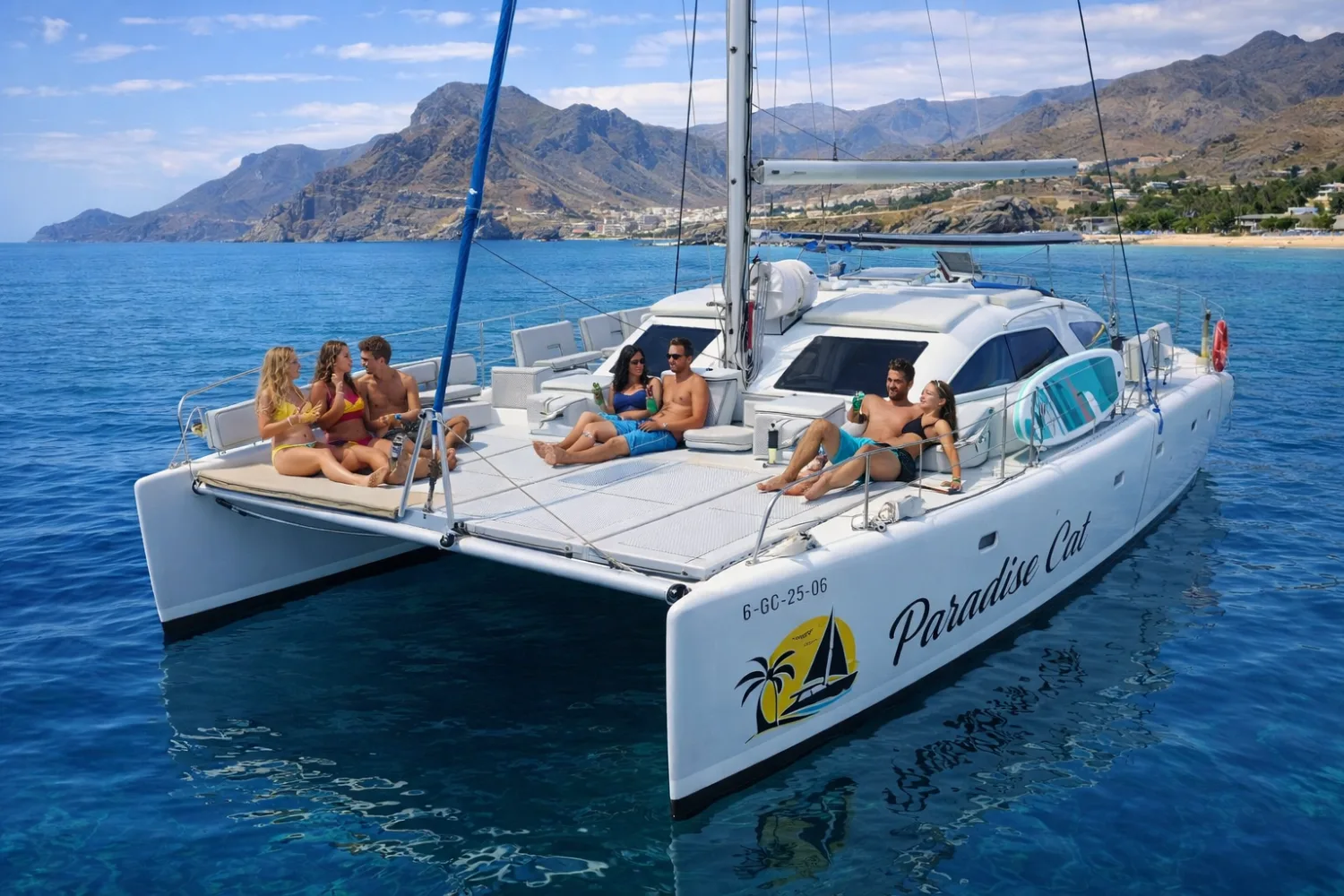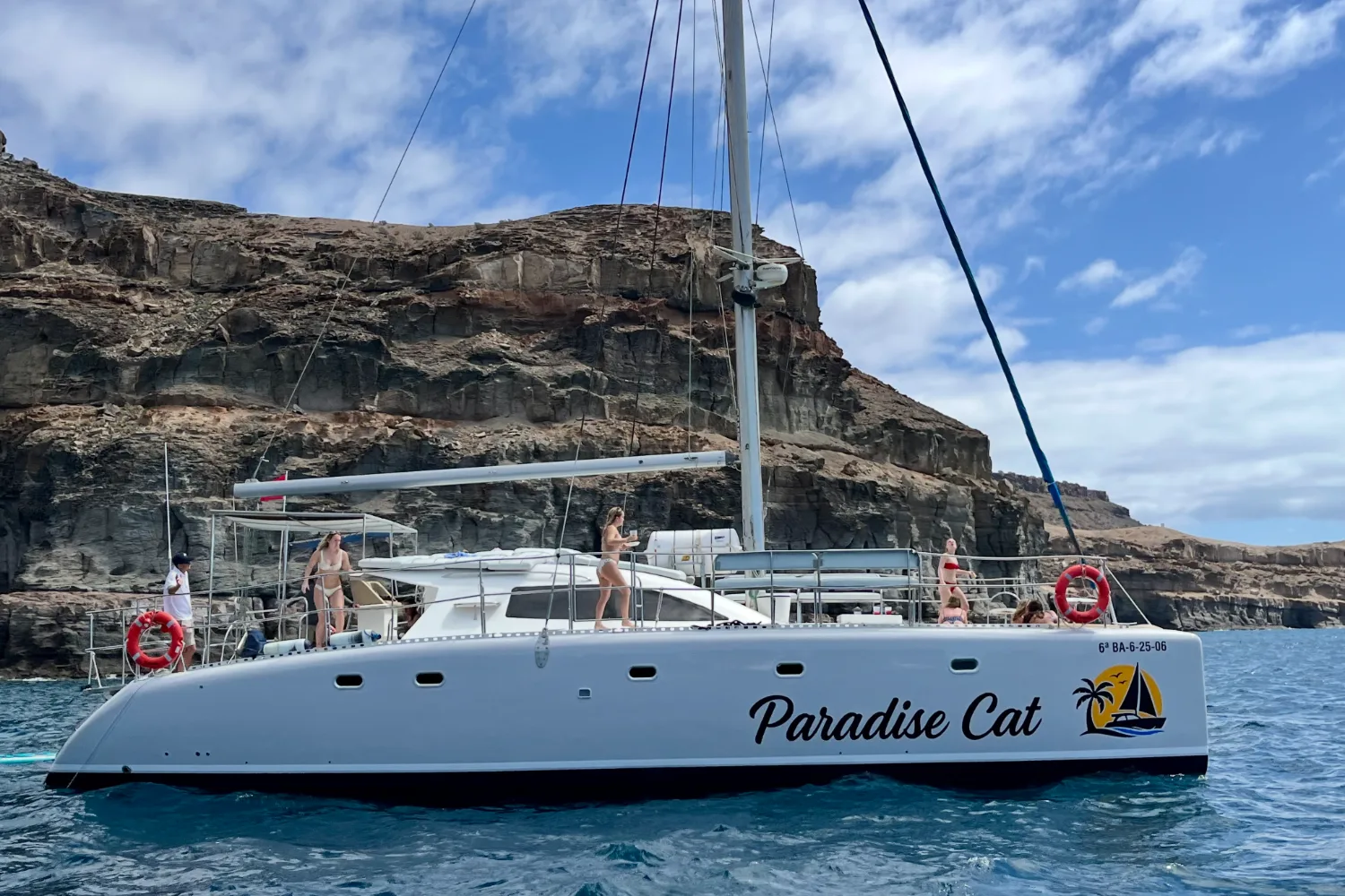 Vive una jornada inolvidable a bordo del Paradise Cat, un elegante catamarán diseñado para disfrutar de la costa sur de Gran Canaria con comodidad, amplitud y un ambiente cuidado. Con capacidad máxima para 45 pasajeros, esta experiencia compartida combina navegación, relax, gastronomía y actividades acuáticas en un entorno privilegiado del Atlántico.