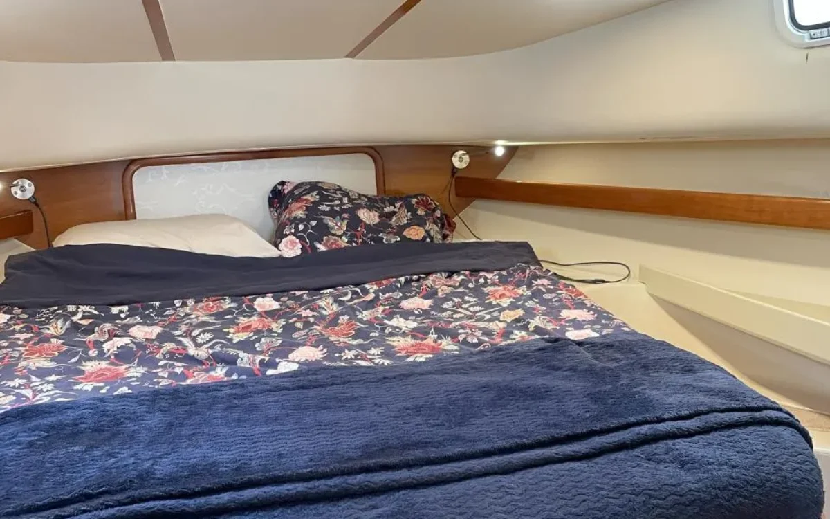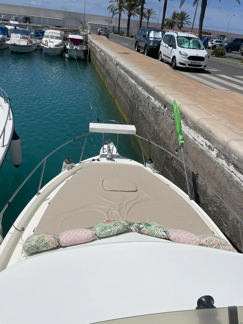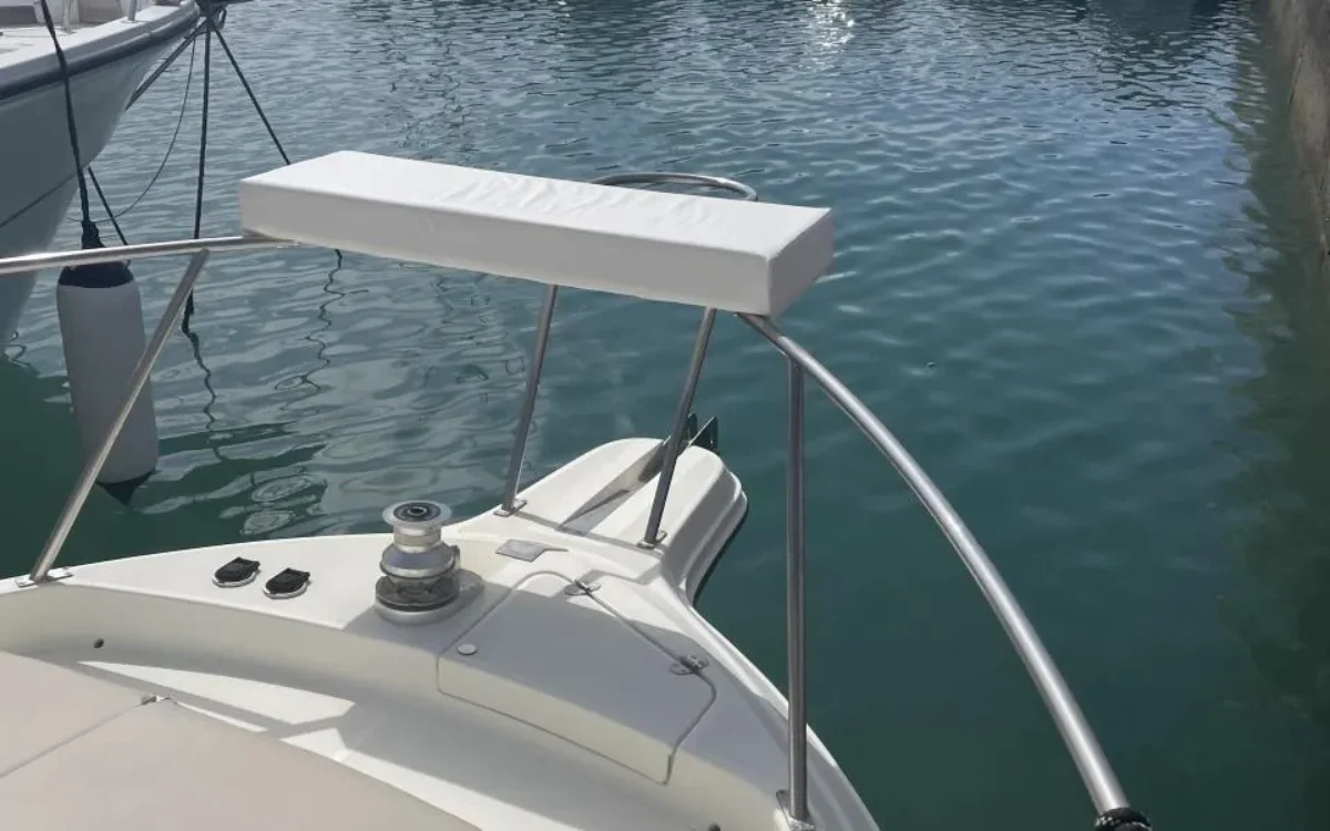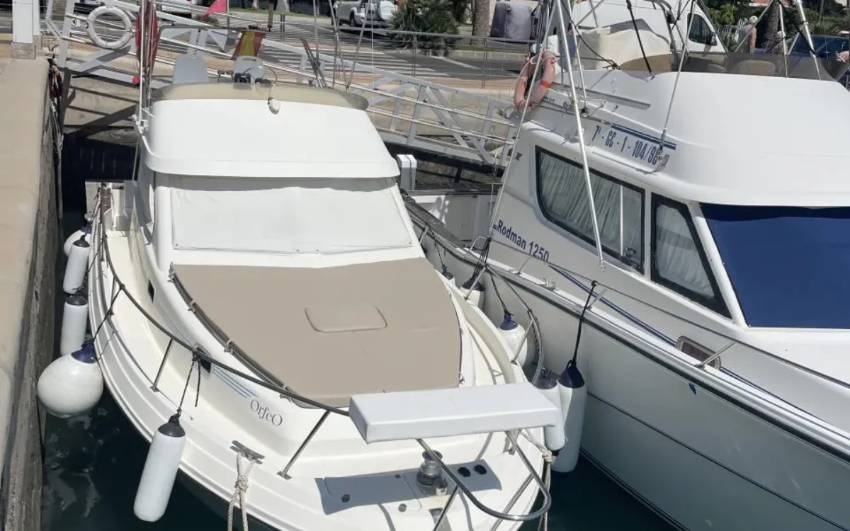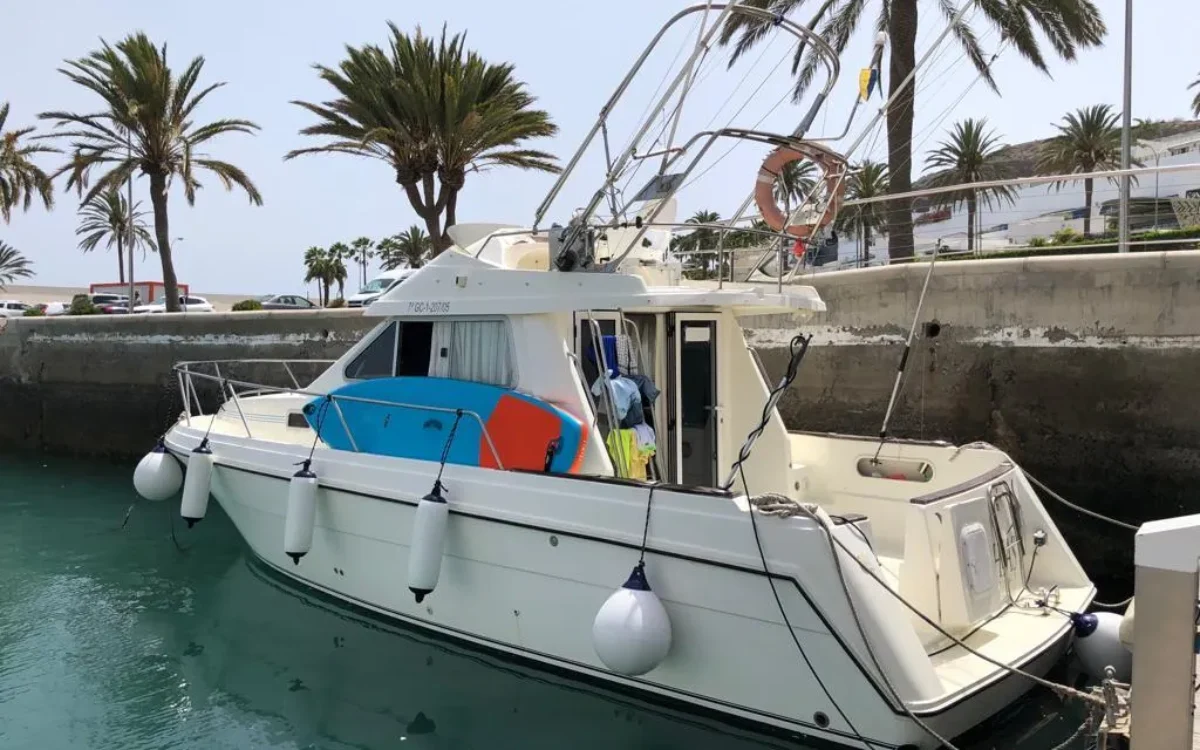 Sale a la venta un estupendo yate con 2 motores Yanmar de 240CV, pese a su contenida eslora de 9,70m ofrece todo lo necesario; salón con sofas, mesa plegable y cocina completa (frigorífico, microondas, placa eléctrica, fregadero y amplios espacios de almacenaje), un confortable camarote principal y otro adicional con 2 literas, baño con ducha, una amplia bañera en popa donde se puede ubicar una mesa o usarla para pescar, plataforma de baño con escalera, colchonetas en proa y un flybridge con toldo.