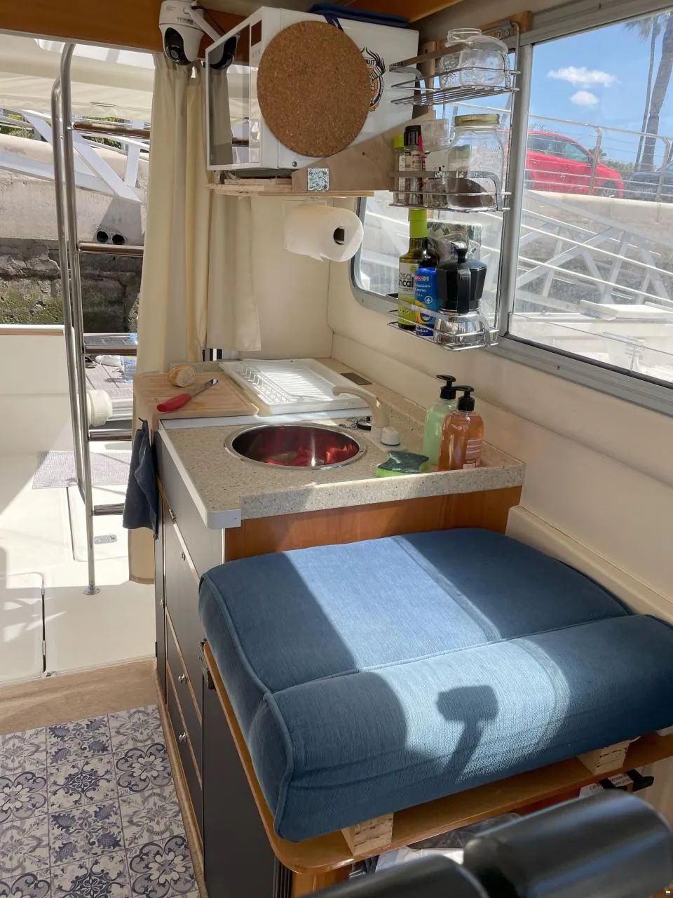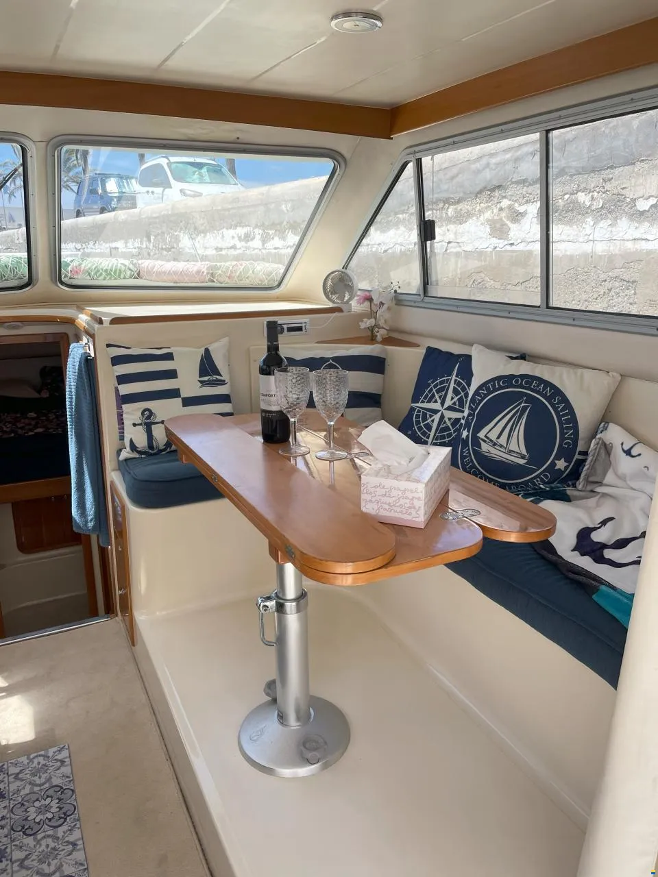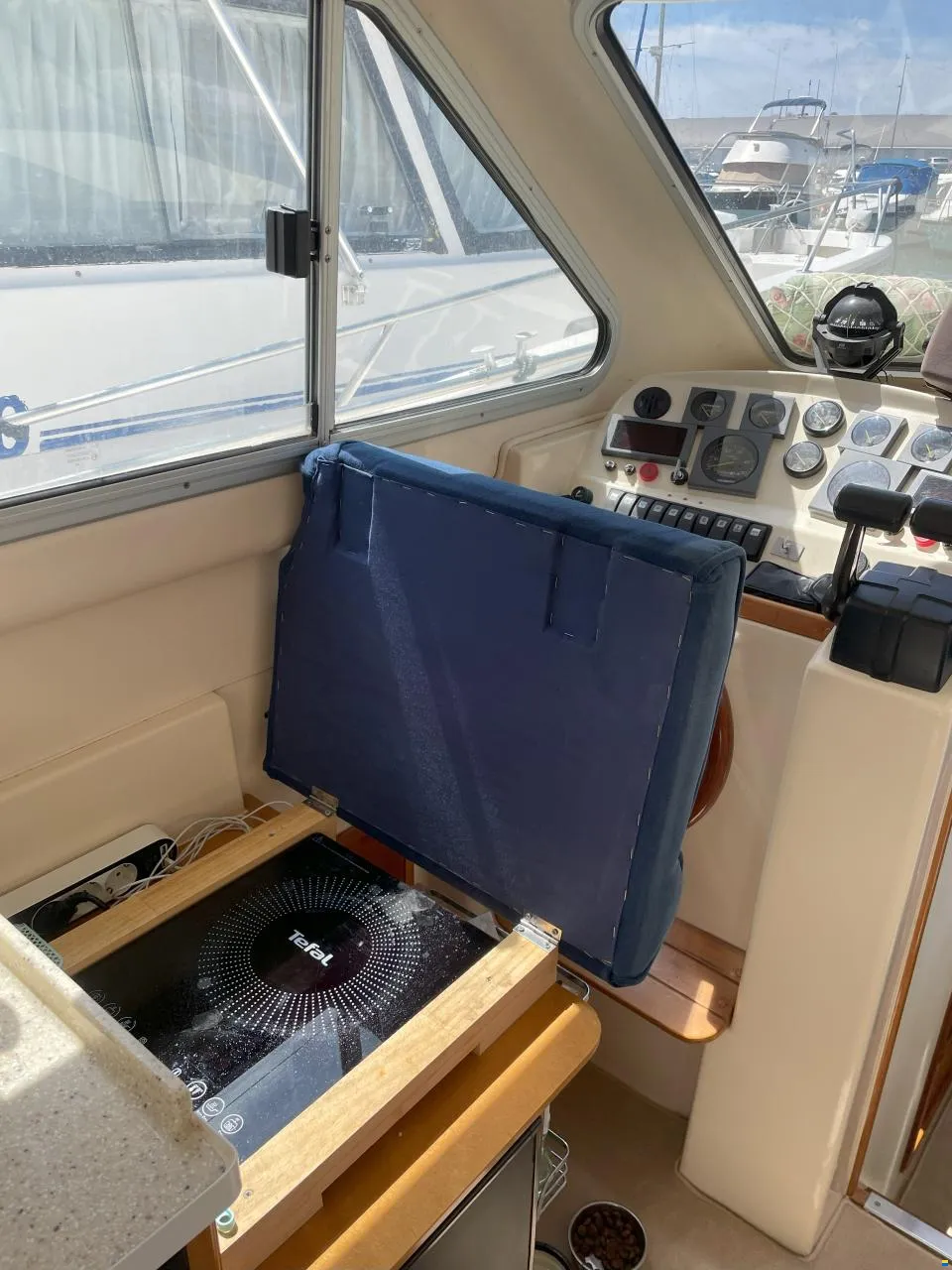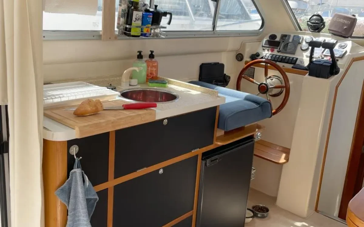 Sale a la venta un estupendo yate con 2 motores Yanmar de 240CV, pese a su contenida eslora de 9,70m ofrece todo lo necesario; salón con sofas, mesa plegable y cocina completa (frigorífico, microondas, placa eléctrica, fregadero y amplios espacios de almacenaje), un confortable camarote principal y otro adicional con 2 literas, baño con ducha, una amplia bañera en popa donde se puede ubicar una mesa o usarla para pescar, plataforma de baño con escalera, colchonetas en proa y un flybridge con toldo.
