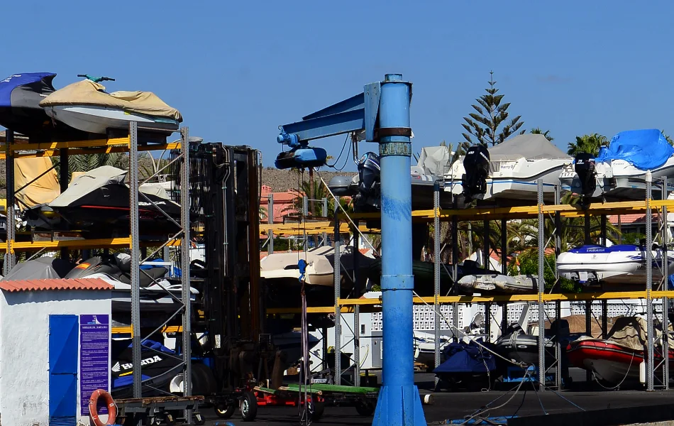 Si dispones de una moto de agua o una embarcación que no supera los 7x3m. olvídate de preocupaciones y solicita tu plaza en la Marina Seca de Pasito Blanco. La cuota mensual incluye 5 operaciones de bajada y 5 de subida al mes. Podrás solicitar el servicio de grúa de 8:15 a 17:00 cualquier día de la semana a través de nuestra aplicación web, por teléfono (+34 928 142 194) o en la Capitanía del Puerto. El servicio se presta en franjas de 15 minutos por movimiento. Se ruega puntualidad, en caso de superarse de la hora solicitada para el servicio, tendrá que esperar a la siguiente franja de disponibilidad.
